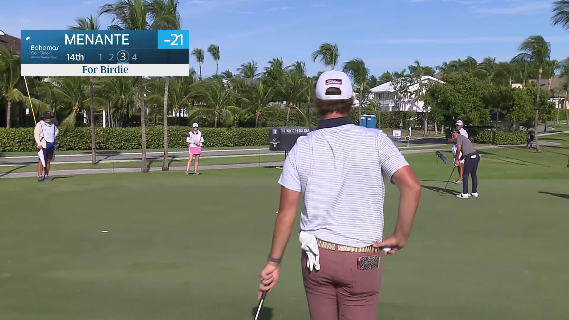 Dylan Menante makes birdie on No. 15 at Bahamas Classic Atlantis