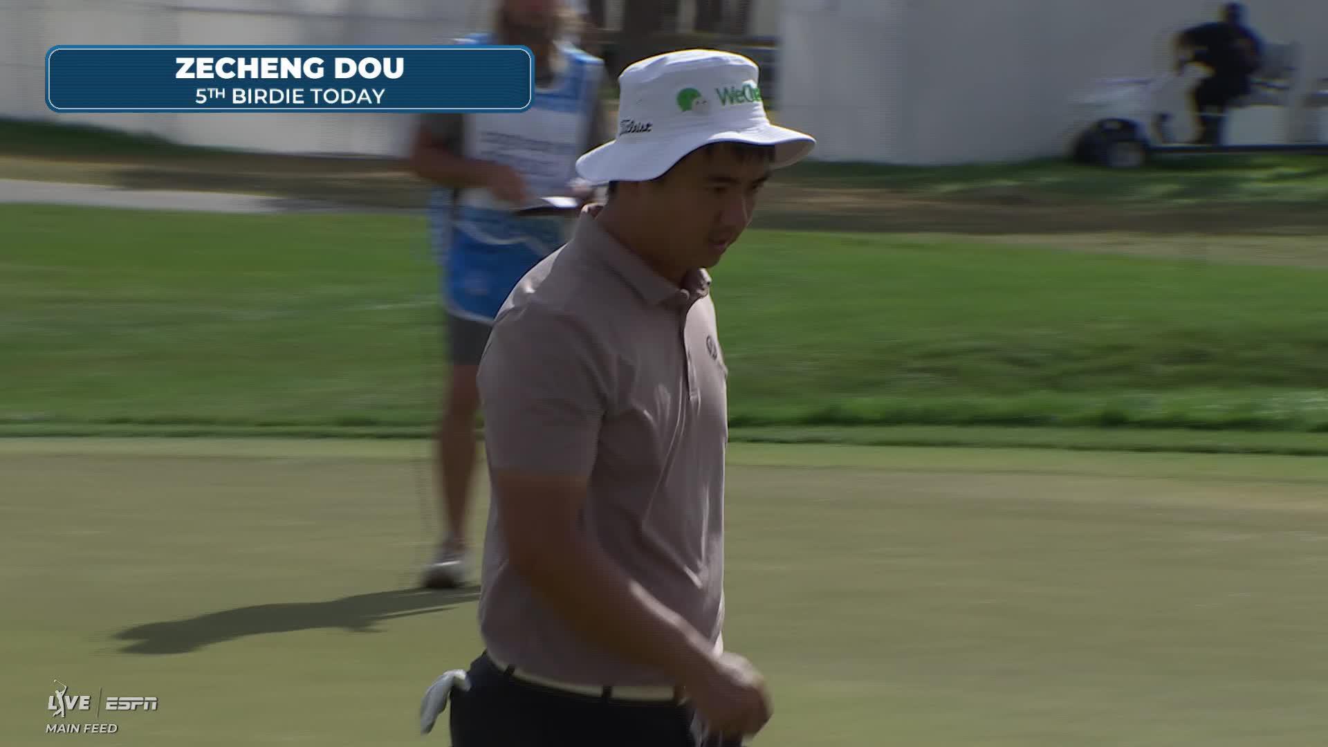 Zecheng Dou sinks 36-foot birdie putt on No. 13 at Cognizant Classic
