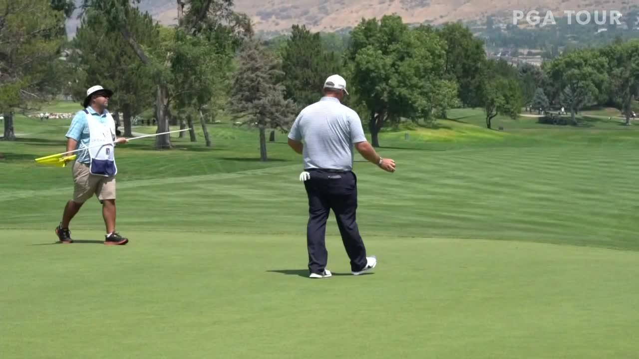 Mark Blakefield makes a birdie on No. 18 in Round 1 at Utah