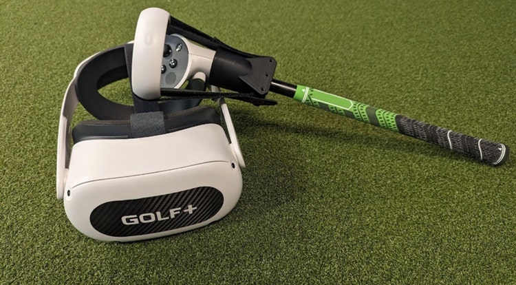 Quest 2 Headset and controller with golf club attachment, used by many GOLF+ players