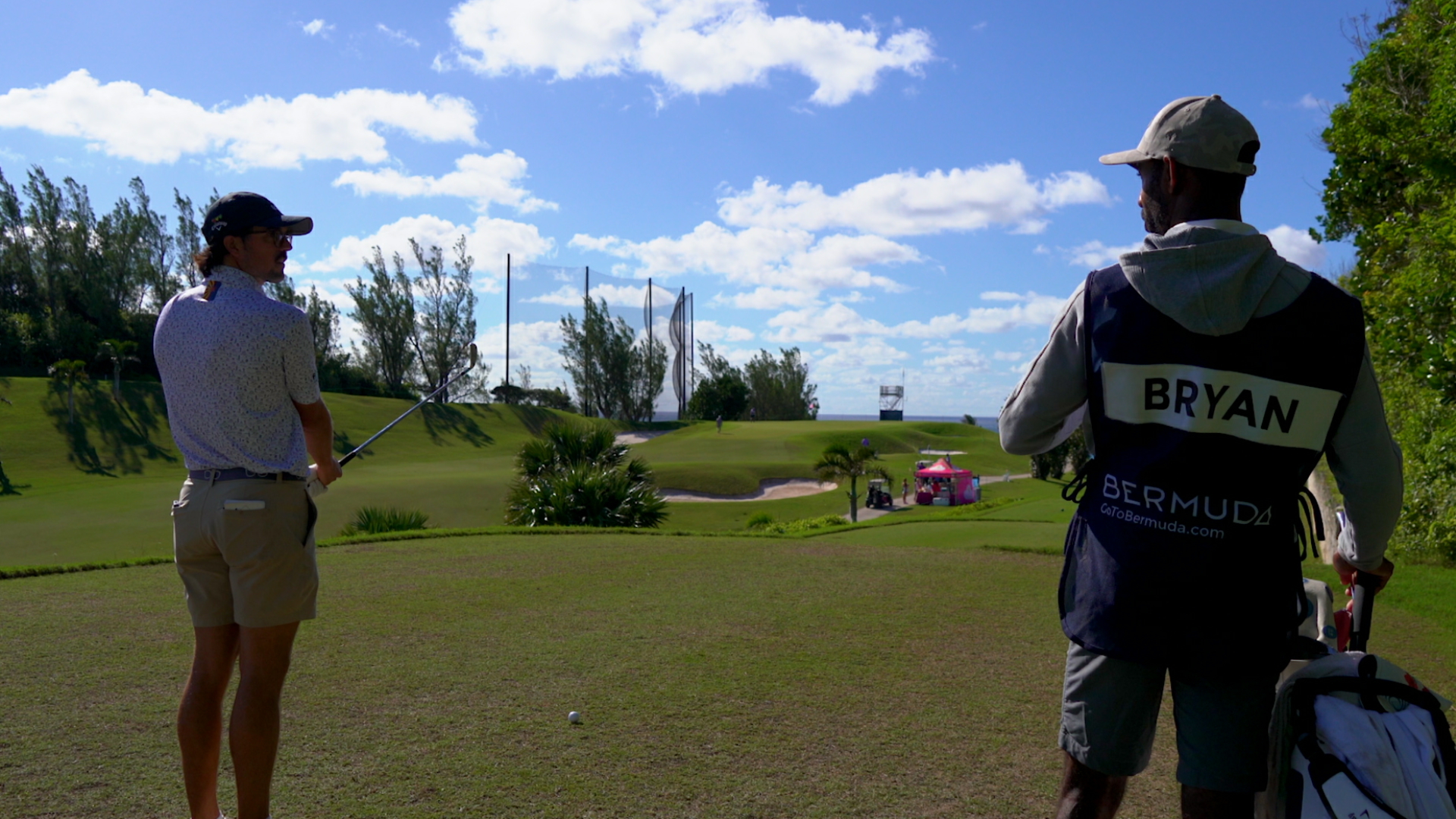 George Bryan and caddie discuss strategy before Butterfield Bermuda