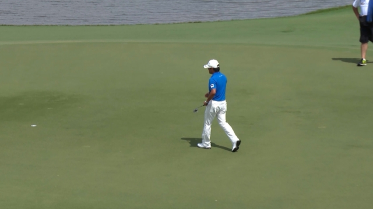 Yusaku Miyazato sinks his 27-foot birdie putt at Cadillac Championship