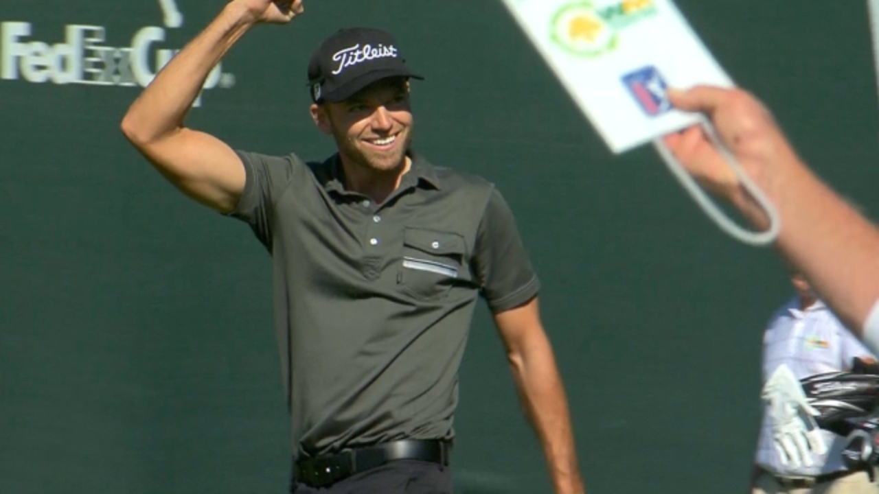 Cory Renfrew chips in for birdie on the famed 16th at Waste Management