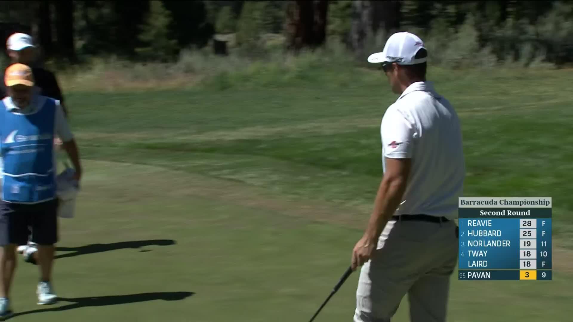 Andrea Pavan makes birdie putt from the fringe on No. 9 at Barracuda