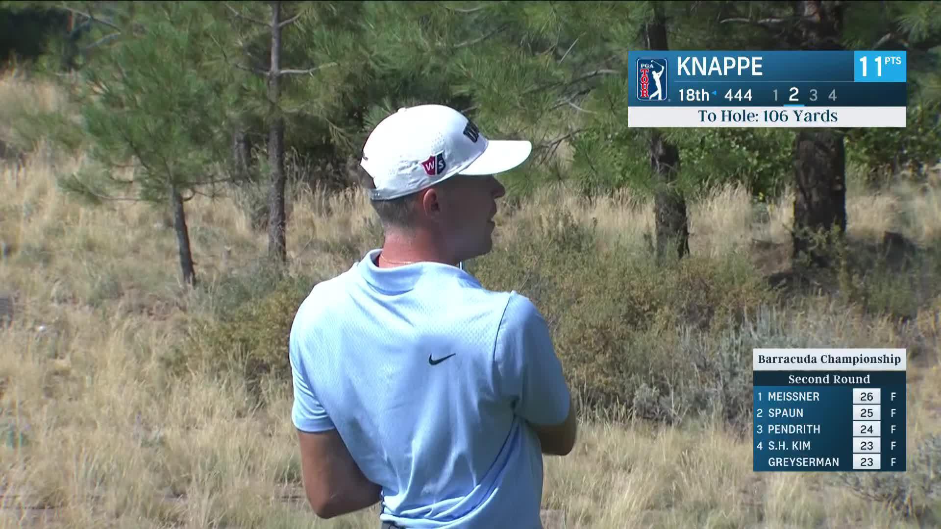 Alexander Knappe throws dart from rough and birdies at Barracuda