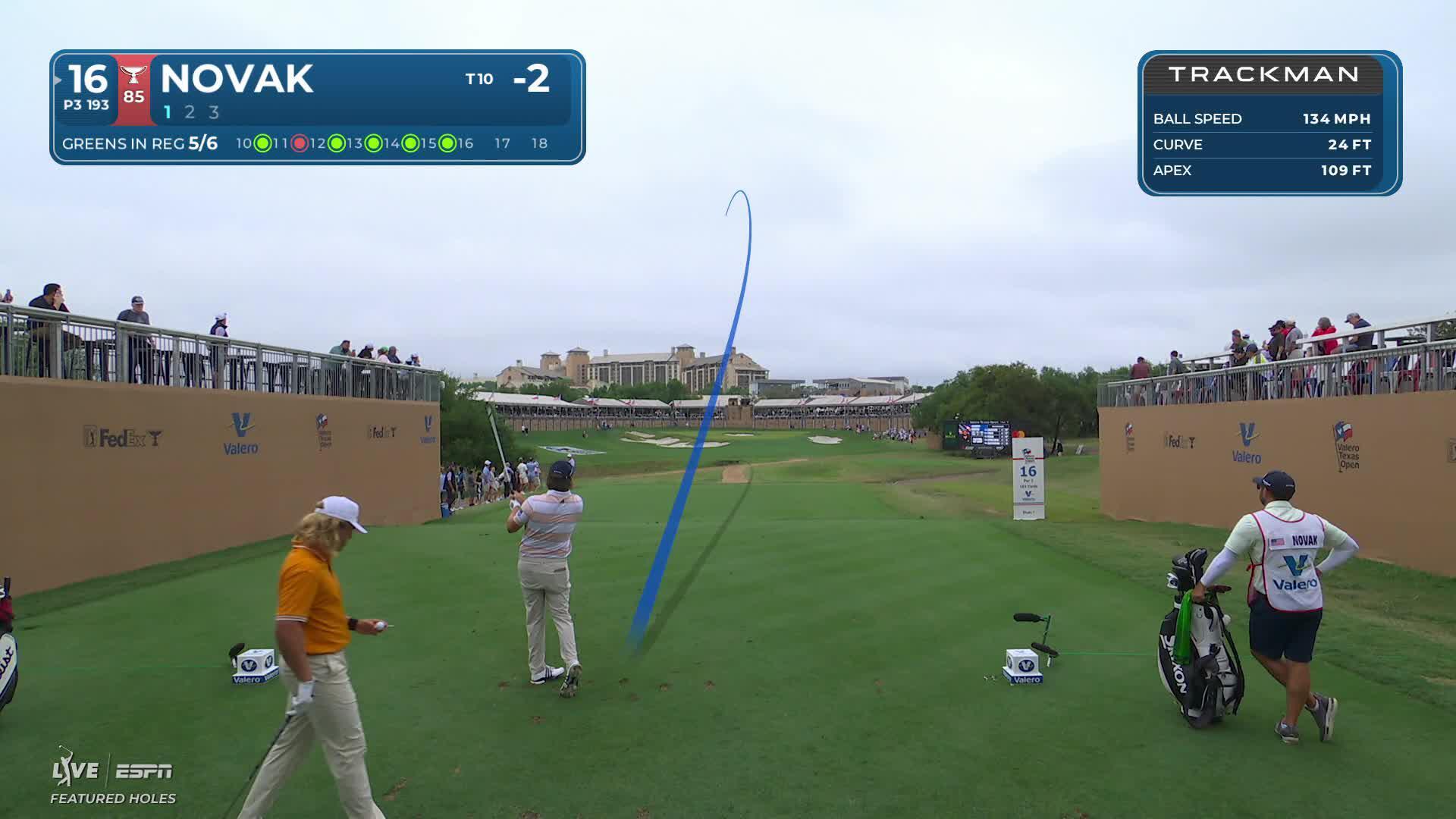 Andrew Novak drains 17-foot birdie putt on No. 16 at Valero