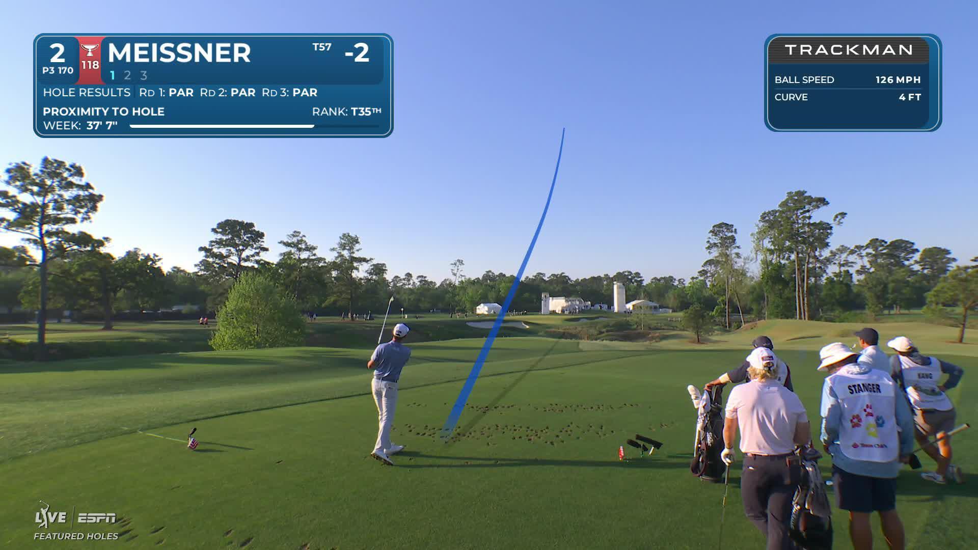 Mac Meissner hits 148-yard approach to 20 feet, sets up birdie on No. 17 at Texas Children's
