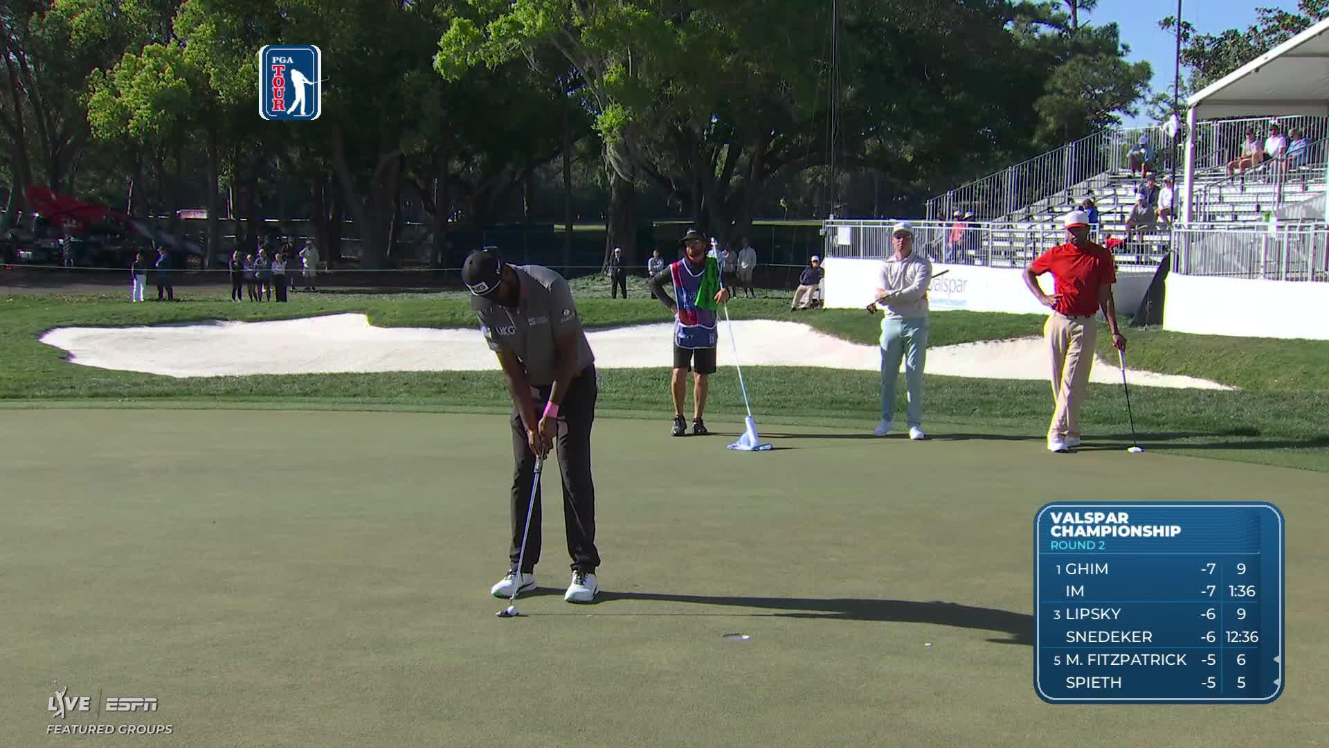 Sahith Theegala sinks 23-foot birdie putt on No. 3 at Valspar